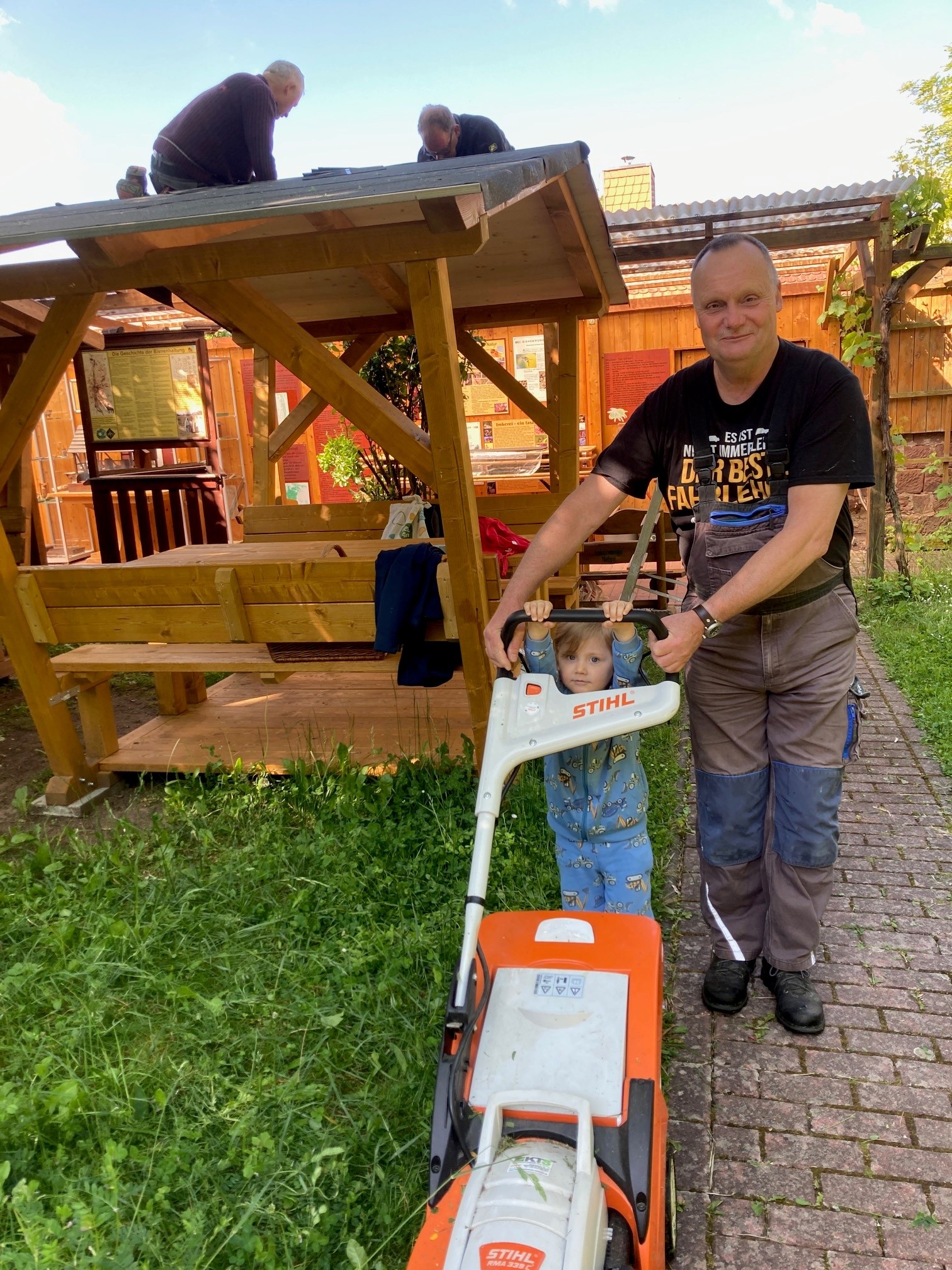 Am 24. Mai 2025 fand ein gemeinsamer Arbeitseinsatz unseres Imkervereins statt. Bei bestem Einsatzwillen und guter Stimmung wurden die Wände frisch gestrichen, das Dach unserer Sitzgruppe fertiggestellt und das gesamte Gelände gründlich aufgeräumt und gesäubert.